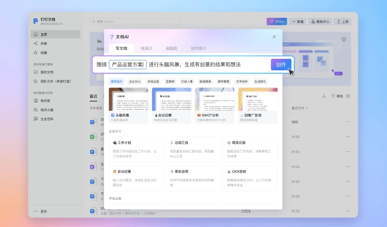 提供超過 50+ 創(chuàng)作指令,快速上手,一鍵輕松完成各種場景的文檔內(nèi)容創(chuàng)作。