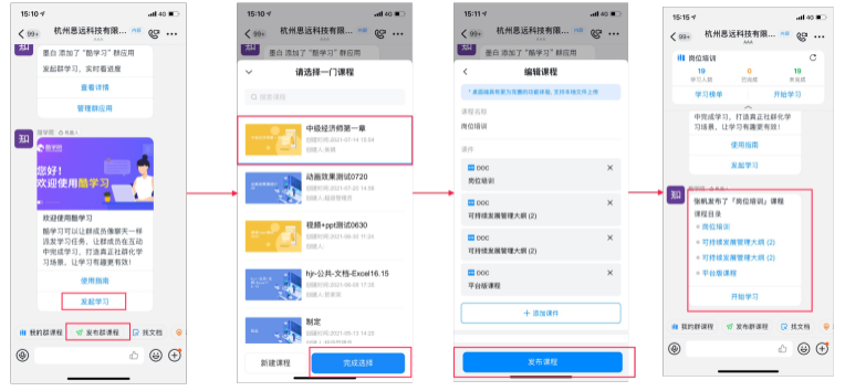 1.自動建群并自定義歡迎語 2.培查看任務(wù)進度,進度“刷屏”PK 3.機器人催學(xué),培訓(xùn)任務(wù)即使觸達 4.培訓(xùn)數(shù)據(jù)自動發(fā)步學(xué)習(xí)群,提升學(xué)習(xí)氛圍