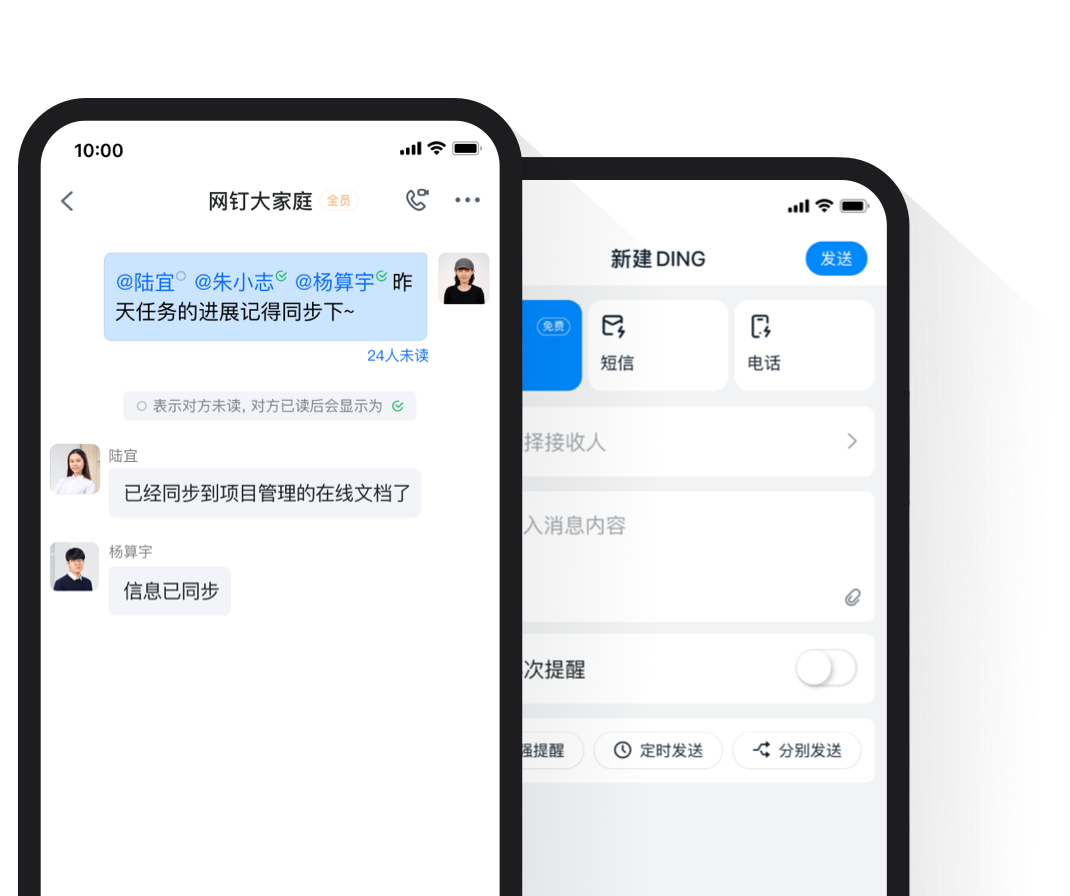 消息支持查看已讀未讀,未讀消息可轉(zhuǎn)DING通知對(duì)方,高效傳達(dá)。
