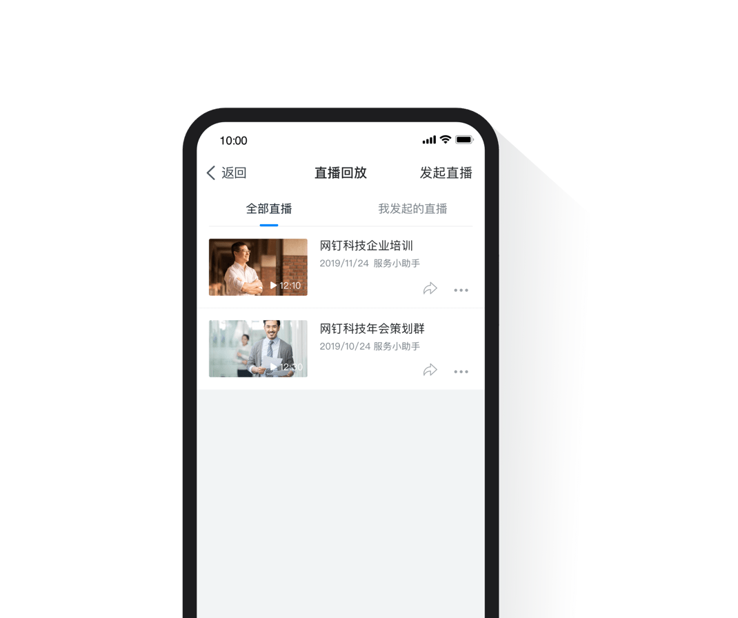 會議直播用釘釘發(fā)起會議直播,省去設(shè)備成本,還可將直播范圍控制在企業(yè)內(nèi),更安全更可控。