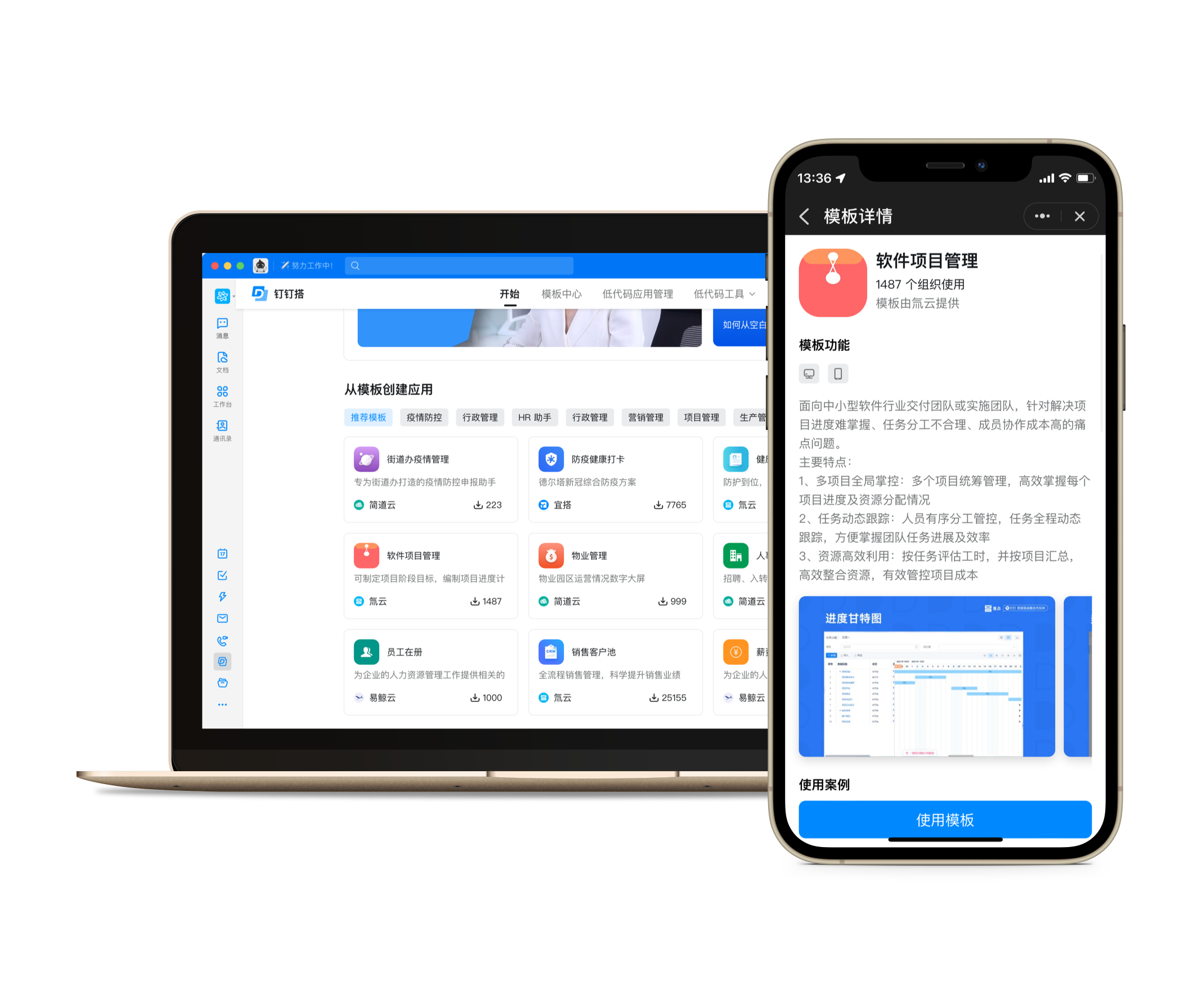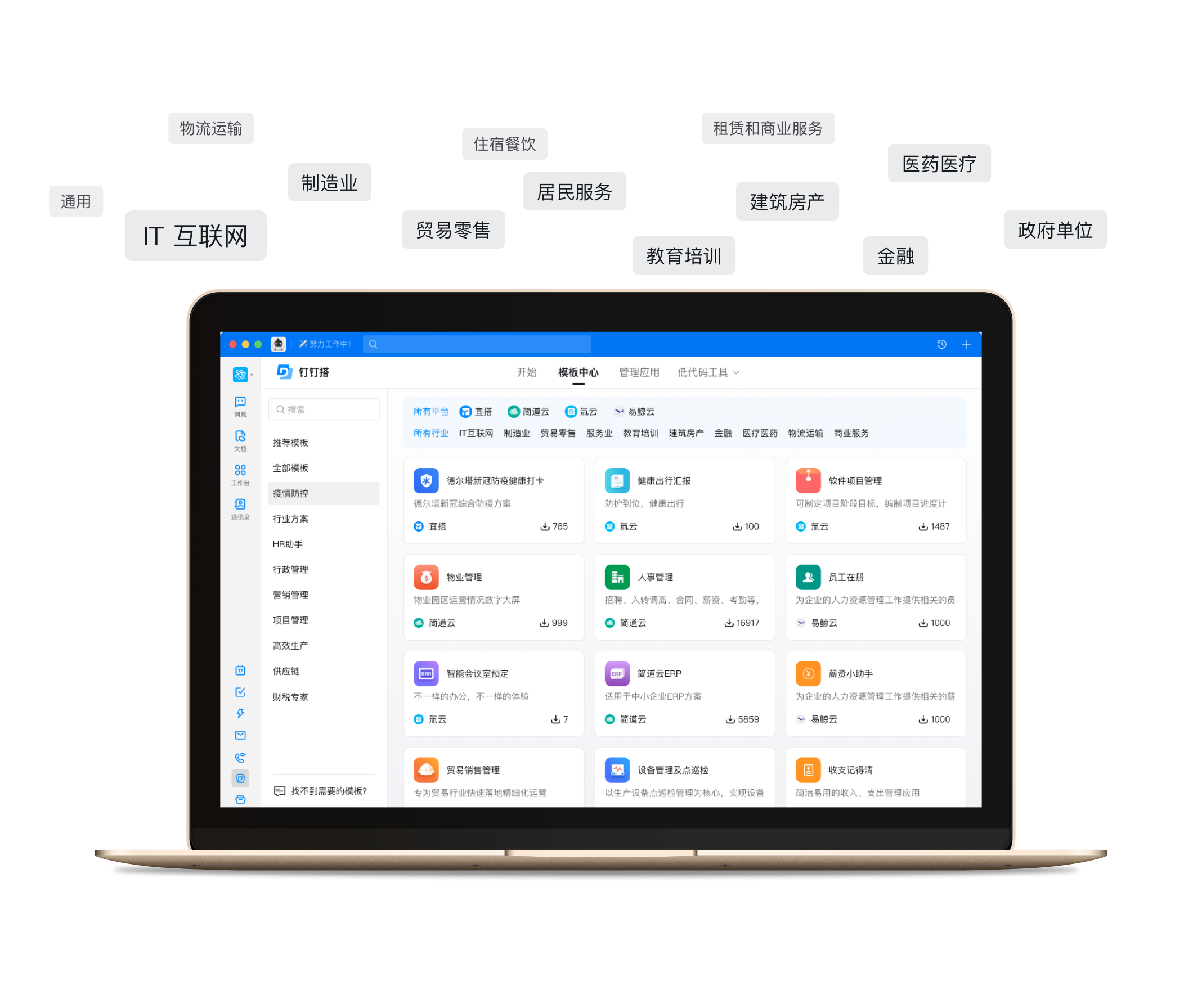 宜搭、氚云、簡道云、易鯨云等頭部低代碼廠商入駐,支持用拖拉拽的方式,像搭積木一樣搭建應(yīng)用,簡單快捷。