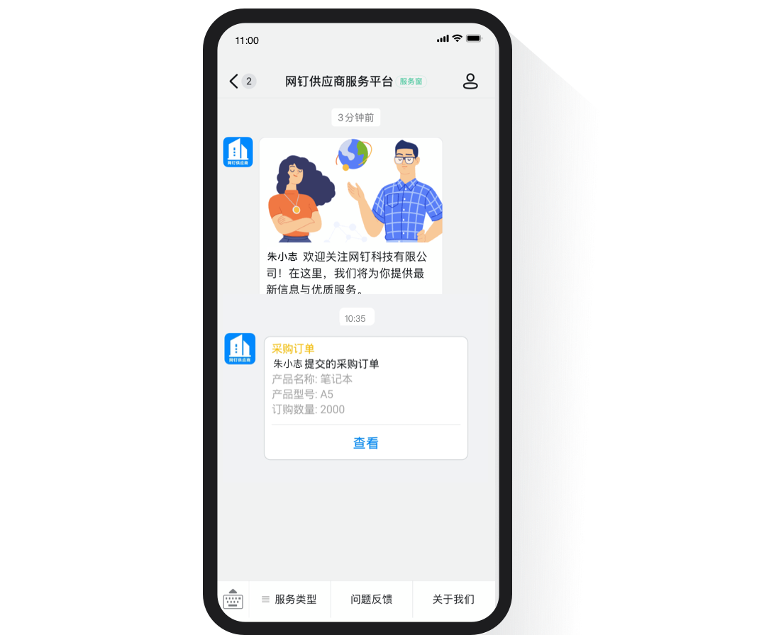 客戶服務(wù)通過服務(wù)窗可配置智能客服,對外展示產(chǎn)品和對外服務(wù)人員,讓客戶服務(wù)更簡單。